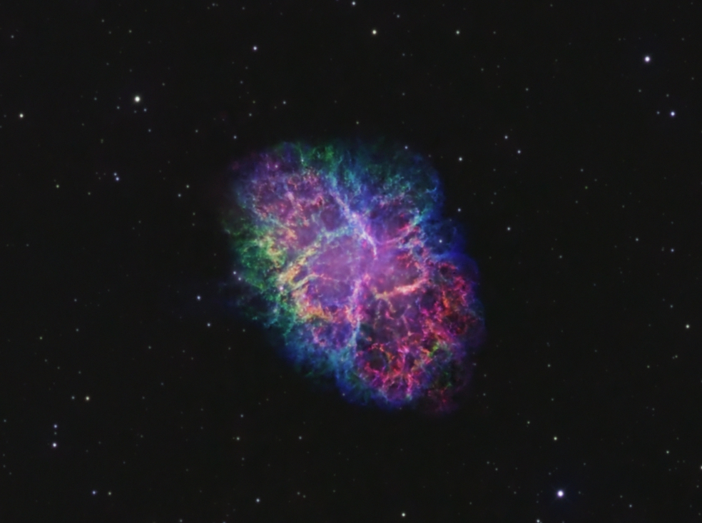 En l’an 1054 la supernova SN 1054 est apparue dans la constellation du taureau. Elle a laissé derrière elle la nébuleuse du Crabe, Messier 1 (lien), et une étoile à neutron d’environ 20 Km de diamètre qui tourne sur elle-même 30 fois par seconde. Elle se trouve à environ 6’500 années lumière du soleil.